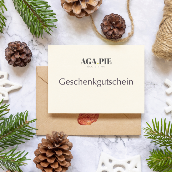 Bei so viel Auswahl schwirrt dir der Kopf? Oder du weißt gar nicht genau, welche Größe die passende ist? Dann verschenke doch einfach unseren AGA.PIE Geschenkgutschein. Wähle einfach den passenden Betrag und erhalte deinen E-Gutschein per Mail. Diesen kannst du anschließend ausdrucken und z.B. weihnachtlich verzieren.